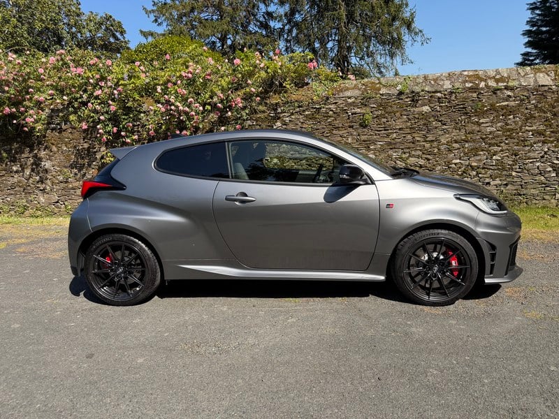 Our Managing Director is a former GR Yaris owner and can speak directly to these modifications. The Eibach setup enhances turn-in noticeably, with no compromise to ride comfort. The Miltek exhaust gives the three-cylinder a more purposeful tone without being overbearing – addressing what Toyota had to mute to comply with EU drive-by noise regulations. The standard car is already excellent; this one is better.