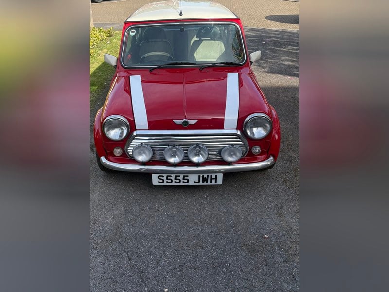 1999 Rover Mini Cooper Sport in classic red with a white roof, bonnet stripes and mirrors. It has the upgrade full black leather interior with a walnut dashboard which is still in nice condition. The mini was first registered to The Rover Group and was taken to Silverstone and displayed on a stand with 8 other identical cars to celebrate 40 years of the Mini . The number plates were from T701 ROF - T709 ROF. Since then it has had normal private ownership and has covered just 34150 miles in the last 27 years. In the history file are pictures of the 9 cars at Silverstone on the Rover stand. I have known the last 2 owners who have always kept it garaged and used as a fine weather mini. It drives very well with a smooth engine and gearbox. It has matching Yokohama tyres which always give superior grip and cornering feel. This a lovely example that drives very well and is in great condition inside and out. Free delivery to your door in my curtain sided van within 200 miles of Tiverton.