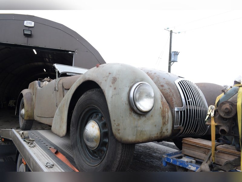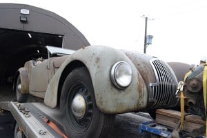 This fine and solid old girl requires full restoration. Her bodywork shows little, if any, sign of serious rot. She has spent the past 55 years in storage with her bodywork greased and her underside covered in coal paint which appears to have helped immensely with the car's preservation.