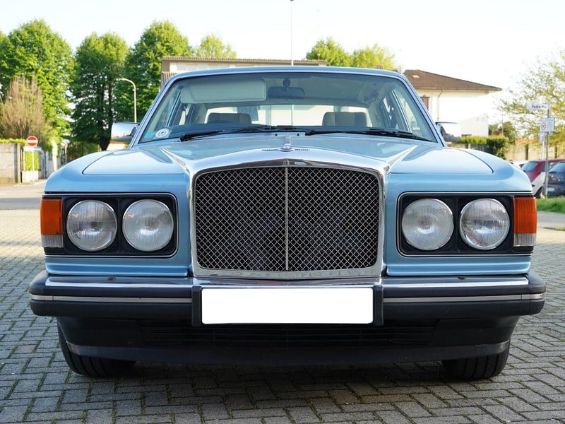 A configuração combina uma tonalidade azul índigo metalizado da carroçaria com pele azul-claro e madeira radica dos interiores, definindo uma das combinações mais elegantes disponíveis na época.