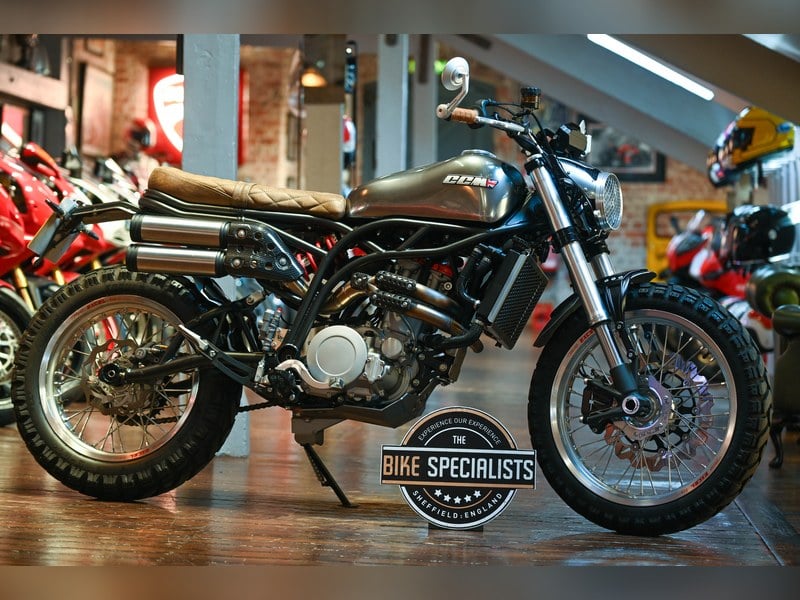 Nytt hos The Bike Specialists erbjuder vi möjligheten att äga vår senaste måsta-ha-limiterade motorcykel. CCM Maverick Infinite, byggd av Preston-baserade CCM. Det är en brittiskt byggd motorcykel som producerades i begränsad upplaga, vårt exemplar är nummer 149 av den begränsade serien. Denna UK-registrerade enhet har bara 1 106 mil och är i utmärkt skick! Även levererad med två nycklar, läderhandboksset och serviceboken som visar att senaste servicen utfördes vid 741 mil.