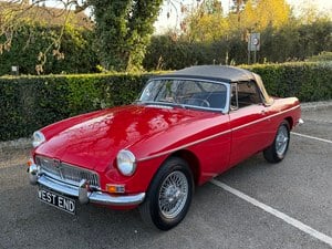 Absolument choyé MGB Roadster MK1 1967 Jantes à rayons Overdrive. Fini dans une carrosserie tartan rouge sans défaut avec sellerie en cuir noir contrastante et habillage rouge traditionnel. Se révèle rafraîchissant dans les spécifications d'origine et a été livré neuf par le concessionnaire de Kidderminster Joseph Cockshoot Ltd en août 1967