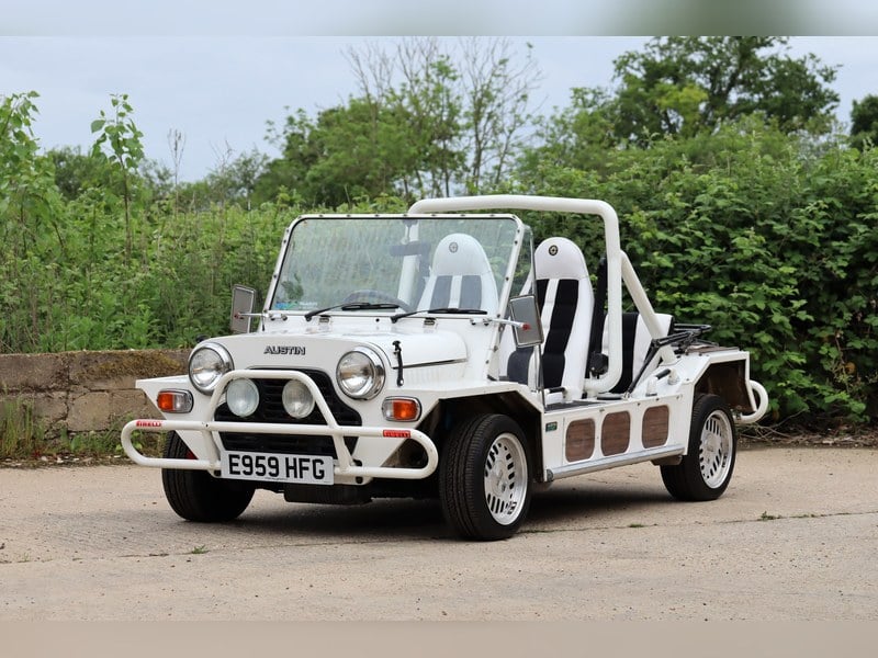 Reputedly one of six Mini Mokes customised by Austin Rover dealer Blandy Bros of Las Palmas de Gran Canaria complete with uprated roll bars, seats, alloy wheels and faux wood trim