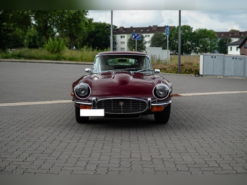 Last of the iconic line, the Jaguar E-type Series III was introduced in 1971. Longer, wider and more comfortable than its predecessors, the newcomer blurred the lines between sports car and grand tourer. Powered by a turbine-smooth all-alloy SOHC 5343cc V12 engine allied to either Jaguar four-speed manual or Borg Warner three-speed automatic transmission, the refined manner in which it performed simply blew road testers away; contemporary road tests spoke of 0-60mph in 6. 4 seconds and 150mph. Benefiting from a broader track, ventilated disc brakes, power-assisted rack and pinion steering, and Lucas transistorised ignition, the Series III was visually distinguished by its 'egg-crate' grille, flared wheel arches and purposeful quad-exhaust pipes. Available in Fixed-Head Coupe (2+2-seater) or Roadster (2-seater) guises, it remained in volume production until 1974 (although a special commemorative run out of forty-nine Black-painted roadsters was released the following year).