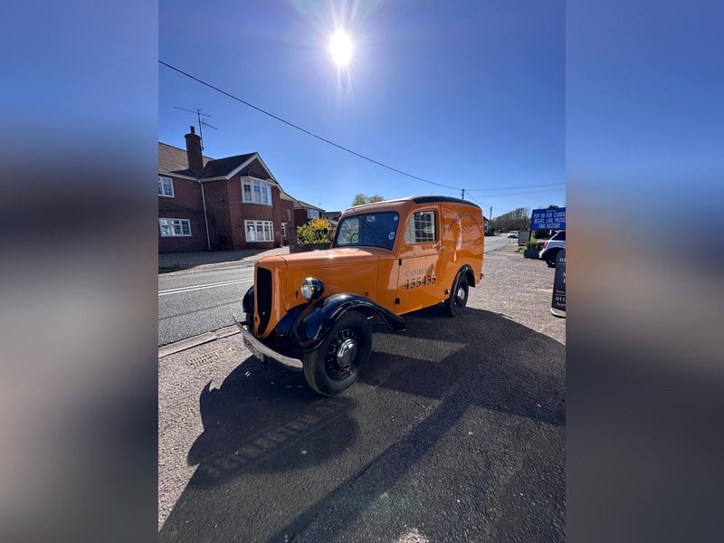A rare and charming example of British post-war motoring, this 1949 Jowett Bradford van presents in lovely condition and appears to have benefited from a recent restoration. These characterful light commercial vehicles are becoming increasingly hard to find, particularly in such appealing order. Finished in a bright orange colour scheme that suits its utilitarian yet distinctive design, the van retains all the charm and simplicity that made the Bradford a favourite among small businesses of the era. The bodywork is clean and straight, with a pleasing finish that suggests careful refurbishment. Brightwork, trim, and details all complement the overall presentation nicely. Inside, the cabin is tidy and functional, reflecting the vehicles working roots while still offering a nostalgic glimpse into late 1940s motoring. The controls are delightfully simple, and the interior condition is consistent with the apparent restoration. Mechanically, the vehicle is believed to be in good order, in keeping with its overall condition, although any prospective buyer should of course satisfy themselves as to its current running and driving status. This Jowett Bradford would make a fantastic addition to any classic collection, an eye catching promotional vehicle, or a unique entrant at vintage shows. Its combination of rarity, character, and apparent restoration makes it a standout example of a bygone era of British engineering. Please call for more details