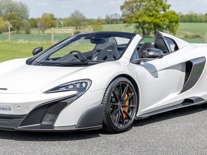 Com as informações disponíveis, creio que este seja o único 675LT Spider com direção à direita a ser pintado em branco pérola bonito, não o branco Silica mais comumente encontrado, e o acabamento de pérola realmente é deslumbrante.