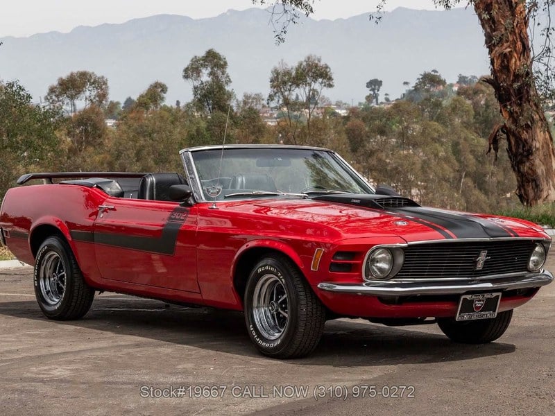 1970 Ford Mustang F-Code ConvertibleIntroducing this 1970 Ford Mustang F-Code Convertible finished in an eye-catching Candyapple Red over a classic black interior. With its unmistakable silhouette, bold stance, and open-top driving experience, this Mustang captures the essence of American muscle and cruising culture from one of the most celebrated eras in automotive history. Highlights:- Exterior Color: Candyapple Red- 302 cubic inch V8- Automatic Transmission- Motorcraft 2-Barrel Carburetor- Power Steering- Power-Assisted Front Disc Brakes- Air Conditioning- Black Convertible Soft-Top w/ Boot Cover- Chrome Accents- Black Rear Decklid Spoiler- Hood-Mounted Tachometer- Jensen 600W MOSFET Amplifier- "302" Graphics with Hood Scoop Emblem- 14-Inch Iconic "Magnum 500" Styled Steel Wheels- Manufacturer's Literature- Jack and Spare Tire IncludedUnder the hood sits a 302 cubic-inch V8 engine paired with an automatic transmission and a Motorcraft 2-barrel carburetor. Equipped with power steering and power-assisted front disc brakes (with rear drums), this example offers optimal driving experience. A cool period-correct touch is the hood-mounted tachometer, a feature popularized during the muscle car era to keep performance within the driver's line of sight. This Mustang is further enhanced with "302" graphics and a hood scoop emblem, giving it a more aggressive and sporty appearance inspired by Ford's high-performance heritage. Additional exterior features include chrome accents, chrome bumpers, a black rear decklid spoiler, and a black convertible soft top with a matching boot cover. It rides on 14-inch iconic Magnum 500 styled steel wheels wrapped in BFGoodrich Radial T/ A tires with raised white lettering, completing the classic muscle car look. Inside, the cabin features bucket seats, a rear bench, a center console, air conditioning, and a 3-spoke steering wheel, all contributing to a driver-focused yet comfortable layout. Entertainment is handled by a retro-style radio paired with a Jensen 600W MOSFET amplifier, while practical details include dual-side rearview mirrors and a fender-mounted antenna. This classic vehicle also comes complete with manufacturer's literature, as well as a jack and full-size spare tire neatly stored in the trunk. The 1970 Mustang was the final year of the original body style before a major redesign in 1971, making it a desirable model for enthusiasts who appreciate the classic early Mustang proportions combined with refined late-generation features. This well-equipped Mustang Convertible offers a compelling mix of style, performance, and nostalgic appeal, a true American classic that is mechanically sound. For $29, 950Introducing this 1970 Ford Mustang F-Code Convertible finished in an eye-catching Candyapple Red over a classic black interior. With its unmistakable silhouette, bold stance, and open-top driving experience, this Mustang captures the essence of American muscle and cruising culture from one of the most celebrated eras in automotive history. Highlights:- Exterior Color: Candyapple Red- 302 cubic inch V8- Automatic Transmission- Motorcraft 2-Barrel Carburetor- Power Steering- Power-Assisted Front Disc Brakes- Air Conditioning- Black Convertible Soft-Top w/ Boot Cover- Chrome Accents- Black Rear Decklid Spoiler- Hood-Mounted Tachometer- Jensen 600W MOSFET Amplifier- "302" Graphics with Hood Scoop Emblem- 14-Inch Iconic "Magnum 500" Styled Steel Wheels- Manufacturer's Literature- Jack and Spare Tire IncludedUnder the hood sits a 302 cubic-inch V8 engine paired with an automatic transmission and a Motorcraft 2-barrel carburetor. Equipped with power steering and power-assisted front disc brakes (with rear drums), this example offers optimal driving experience. A cool period-correct touch is the hood-mounted tachometer, a feature popularized during the muscle car era to keep performance within the driver's line of sight. This Mustang is further enhanced with "302" graphics and a hood scoop emblem, giving it a more aggressive and sporty appearance inspired by Ford's high-performance heritage. Additional exterior features include chrome accents, chrome bumpers, a black rear decklid spoiler, and a black convertible soft top with a matching boot cover. It rides on 14-inch iconic Magnum 500 styled steel wheels wrapped in BFGoodrich Radial T/ A tires with raised white lettering, completing the classic muscle car look. Inside, the cabin features bucket seats, a rear bench, a center console, air conditioning, and a 3-spoke steering wheel, all contributing to a driver-focused yet comfortable layout. Entertainment is handled by a retro-style radio paired with a Jensen 600W MOSFET amplifier, while practical details include dual-side rearview mirrors and a fender-mounted antenna. This classic vehicle also comes complete with manufacturer's literature, as well as a jack and full-size spare tire neatly stored in the trunk. The 1970 Mustang was the final year of the original body style before a major...