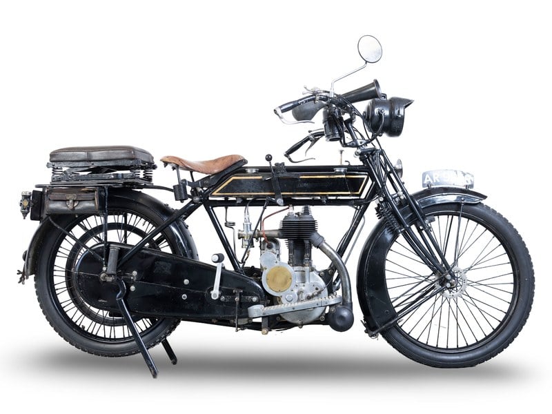 This motorcycle is Lot 201 to be auctioned by Bonhams at The Spring Stafford Sale (The International Classic MotorCycle Show) on April 25th & 26th, please see the Bonhams Motorcycles Website for full details. Auction Timings: Lots 1 - 94 are to be sold from 14:30 on Saturday 25th April 2026. Lots 201 - 353 are to be sold from 11:30am on Sunday 26th April 2026. Public Viewing: Available 25th & 26th April 2026 from 09:00 until 17:00, at The Staffordshire County Showground (The International Classic MotorCycle Show). The David Plant Collection ** 1914 Sunbeam 3½hp** Registration no. AR 9958 Frame no. 2582 Engine no. 2575AN The first Sunbeam motorcycle - a 350cc side-valve single - left the Wolverhampton premises of John Marston, hitherto a manufacturer of finest quality enamelled goods, bicycles and - latterly - cars, in 1912. Designed by Harry Stevens (later to found AJS) the 2¾hp Sunbeam was equipped with a two-speed countershaft gearbox and fully enclosed all-chain drive, proving an instant success in an era when the norm was hub gears and belt-drive. Like Marston's other products, his motorcycles soon established a reputation for sound construction and exemplary finish. Their racetrack performances did nothing to discourage sales either. Howard Davies (later to found the H. R. D. marque) finished 2nd in the 1914 Senior TT on his and Sunbeam's first visit to the Island, and Tommy De La Hay inherited victory in the 1920 Senior after George Dance, also Sunbeam-mounted, retired while leading. Sunbeam's second model was the John Greenwood-designed 3½hp of 1913. A sidevalve single like its predecessor, the 3½hp came with a three-speed hand-change gearbox and fully enclosed oil-bath chain cases, the latter first seen on the company's bicycles. With the coming of WWI, most of Sunbeam's production was earmarked for Allied forces, the biggest 'home' user being the Royal Naval Air Service (forerunner of the Fleet Air Arm), which ordered the 3½hp as its favoured model. This Veteran-era Sunbeam was purchased by the vendor from Brooks' auction at The Classic and Motorcycle Mechanics Show on Sunday 15th October 2000 (Lot 221). At the time of the Brooks sale the registered keeper was Brian Moore of Hildersham, Cambridge, a former President of the Veteran Car Club, who had acquired the machine in May 1999. The present vendor is the subsequent recorded owner. The history file contains extensive early documentation including a letter dated 22nd March 1979 from the Department of Transport Central Storage Repository addressed to a Mr Lightfoot. The letter asks whether he was still the owner of the vehicle and, if so, whether he wished to receive the original logbooks dating back to 1921 before the remaining manual records were destroyed. The letter, signed by Mrs B Fox, notes that the documents were not official but were offered so that the owner could retain the vehicle's history. A subsequent letter thanks Mr Lightfoot for sending a photograph of the motorcycle and confirms that the historic logbooks and original registration document had been enclosed and returned to him. Several early logbooks are present; the first, dated 15th January 1921, describes the machine as a 3½hp Sunbeam and records taxation from December 1921 through to December 1924. A continuation logbook was issued on 30th March 1925. The owner in 1921 is recorded as one F E Stevens of 1 Beechwood Road, Leagrave, Luton. Also included in the file is Stevens' original Form RF1 application for a licence, dated 3rd January 1921. A later logbook issued in July 1957 records the machine in the ownership of Arthur Prince's Garages, Loughborough. In March 1963 it passed to Thomas William ('Tom') Lightfoot of 10 Kings Road, Wimbledon, and the machine is shown as taxed between 1957 and 1964. During this period it is also described as a bicycle and sidecar. A further logbook issued on 12th March 1965 still records Lightfoot as the owner, by which time he had moved to Staines, Middlesex. Lightfoot was a jeweller and he and his wife Rita were noted Veteran car enthusiasts. Also on file is a Pioneer Certificate issued on 18th December 1961 in the name of Tom Lightfoot. The file also contains a photocopy of the Sunbeam 3½hp Motorcycles and Sidecars Parts List, 1914–1921. An older restoration, the machine's notable features include a Sunbeam MCC Pioneer Register plaque; P&H; headlamp and rear lamp; Tan-Sad type rear pillion seat; Lucas horn; three-speed gearbox (stamped 'JT 12230 144'); and a Bosch magneto. The Sunbeam was last taxed until December 2013. Offered with old/ current V5C documents. The engine turns over. Following a period of inactivity, this motorcycle will require recommissioning and/ or restoration to a greater or lesser extent before returning to the road and thus is sold strictly as viewed. Prospective purchasers should satisfy themselves with regard to this motorcycle's completeness, history, authenticity, originality and mechanical condition prior to bidding...