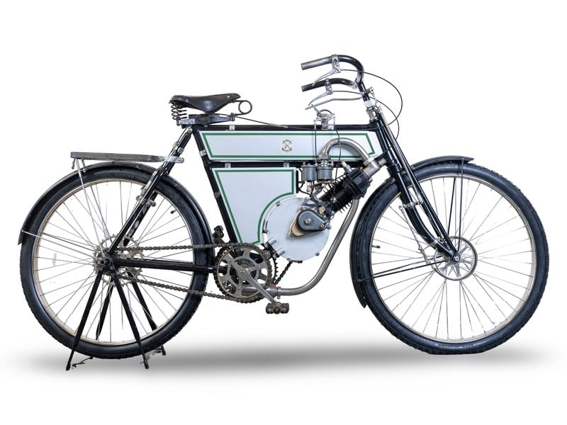 Esta motocicleta é o Lote 219 a ser leiloado pela Bonhams na The Spring Stafford Sale (The International Classic MotorCycle Show) a 25 e 26 de abril; consulte o site de Motocicletas da Bonhams para todos os detalhes. Horário do leilão: Os Lotes 1 a 94 serão vendidos a partir das 14:30 de sábado, 25 de abril de 2026. Os Lotes 201 a 353 serão vendidos a partir das 11:30 de domingo, 26 de abril de 2026. Exposição pública: disponível nos dias 25 e 26 de abril de 2026, das 09:00 às 17:00, no Staffordshire County Showground (The International Classic MotorCycle Show). A Coleção David Plant ** 1904 Kynoch 2¾hp** Registo nº a confirmar (Isle of Man) N.º de chassis não localizado N.º de motor 501. O ficheiro de história contém notas de pesquisa fotocopiadas e artigos relativos à motocicleta Kynoch, incluindo um relato detalhado das origens e do desenvolvimento da marca. Um artigo explica que a Kynoch (pronuncia-se 'Ky-nock'), mais conhecida como um grande fabricante de munições com sede em Witton, Birmingham, entrou brevemente no mercado de motocicletas nos primeiros anos do século XX. A firma já possuía considerável capacidade de engenharia e instalações de produção de bicicletas, tornando a mudança para as motocicletas uma progressão lógica. Embora muitas fontes históricas sugiram que a Kynoch começou a produzir motocicletas em 1912, o artigo citado observa que uma moto Kynoch já havia aparecido em 1904, utilizando um design intimamente relacionado com o Humber contemporâneo. O design incorporava o conceito patenteado de motor como elemento do quadro, desenvolvido pela Phelon & Rayner (P&R;), mais tarde conhecido como P&M; e, por fim, Panther - onde o motor efetivamente formava a travessa frontal do quadro. A P&R; licenciou esse design patenteado à Humber, que pagou royalties, acredita-se, de 7 shillings e 6 pence por unidade, e a Humber subsequente sublicenciou o arranjo a vários outros fabricantes, a Kynoch entre eles. A moto Kynoch terá sido exibida ao lado da Humber e outras máquinas no Stanley Show em Londres, precursor dos posteriores salões de motos em Earls Court. O artigo regista ainda que a P&R; mais tarde moveu ações contra a Humber pelo uso da sua patente, resultando em disputas sobre pagamentos de royalties. Em menos de um ano, a Humber introduziu um design revisto que evitava a patente P&R;, encerrando efetivamente o arranjo. Registos oficiais sugerem que a Kynoch retirou os seus produtos do mercado de motocicletas, citando problemas de ignição e carburação, embora também se sugira que a empresa possa simplesmente ter desejado evitar a associação com a disputa de patentes. A Ilha de Man tem um papel de destaque na história da marca. Os produtos Kynoch foram distribuídos na Ilha, onde Frank Hughes, de 19 Great Nelson Street, e Fred Gash, de 9 Strand Street, anunciavam motos Kynoch em 1904. Relatórios contemporâneos, incluindo um no Monas Herald, registo ambos a Guin, a conduzirem motos Kynoch numa subida local. Cópias de fotografias da época estão arquivadas, mostrando a máquina, ou um exemplo próximo, fora de um depósito de automóveis, as imagens datando claramente do início do período eduardiano. Referências posteriores sugerem que a máquina poderá ter ficado armazenada em Crosby, na Ilha de Man, possivelmente desde os anos 1950, antes de reaparecer no Murray Motorcycle Museum, onde ficou exposta em condição incompleta durante muitos anos. Após o encerramento do museu, a moto foi adquirida pelo seu atual proprietário, que posteriormente realizou uma extensa reabilitação. Também em ficheiro está correspondência de e-mail datada de outubro de 2021 de Robert Dixon, que fornece informações adicionais relativas às primeiras motos Kynoch. Dixon observa que em 1904 as motos eram produzidas pela Kynoch para F Hayden de Cheltenham, incluindo um design em que o quadro funcionava também como depósito de combustível, com óleo transportado num reservatório junto ao movimento inferior. Estas máquinas, segundo se diz, utilizavam um motor Simms de 2¾hp montado verticalmente com ignição por magneto e carburador FN, acionando a roda traseira por correia, acreditando-se que tenham sido construídos pelo menos dois exemplares. Dixon acrescenta ainda que a marca reapareceu por volta de 1912, quando a Kynoch produziu motos equipadas com motores JAP de 3½hp ou Precision, com caixa de velocidades de duas marchas da BSA ou transmissão de motor livre e garfos Druid. Em 1913, as máquinas passaram a ser listadas apenas com motores JAP, quer de 4hp mono, quer de 6hp bicilíndrico, conduzidos através de um cubo Sturmey-Archer de três velocidades com зан final por correia. O ficheiro também contém correspondência anterior do vendedor discutindo a raridade de Kynochs sobreviventes e observando que muito poucos exemplos são conhecidos por sobreviver, com a maior parte da produção alegadamente ocorrendo entre 1912 e 1914. Também em ficheiro está um Certificado Pioneer datando a máquina de 1903. Convém notar que o registo da Ilha de Man 'MN-70' exposto está a ser mantido pelo vendedor. Será emitida uma numeração de registo ilha de Man substituta adequada, com o número de registo a confirmar. Se adquirida por um residente no Reino Unido, o Documento de Registo da Ilha de Man precisará de...