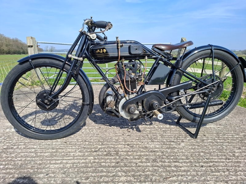 Ursprünglich Hersteller proprietärer Motoren, gründete A J Stevens Ltd. aus Wolverhampton 1911 sein erstes komplettes Motorrad. Der erste AJS war ein Einzylinder-Seitenventil-Motor, ein Leichtgewicht mit 292cc, der in zwei Versionen kam: eine mit direktem Riemenantrieb (Modell A) und die andere (Modell B) mit einem zweigangigen Zwischenwellen-Getriebe, ein Vorteil, den nur wenige zeitgenössische Konkurrenten hatten. Das Unternehmen nahm erstmals 1911 am Isle of Man TT teil und erzielte 1914 einen historischen Durchbruch, als es die Junior-Klasse gewann – der erste Sieg einer Einzylindermmaschine. Von da an blieb das 2¾hp (350cc) Seitventil-Modell ein fester Bestandteil des AJS-Portfolios. Leichtgewichtig (ca. 200 Pfund), robust und ausreichend leistungsstark, gilt dieses Modell weithin als eine der besten frühen Vintage-Sportmaschinen.