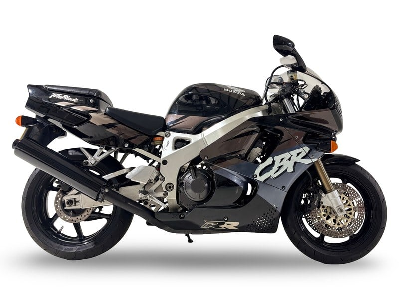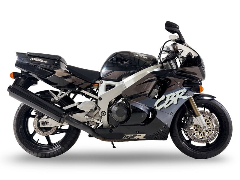 Offered here is a stunning example of the original and much sought-after 1992 twin-headlamp Honda CBR900RR FireBlade, finished in the rare Black and Grey colour scheme. The Honda has been signed by its designer, Tadeo Baba (see picture on file) and also by former racer Steve Plater, winner of the 2009 British Supersport Championship while riding for Honda. Purchased in May 2014 by the private vendor, the FireBlade has been dry stored since acquisition and currently displays a total of 51, 552 miles on the odometer (same mileage as the last MoT in 2014). Following a period of inactivity, recommissioning to a greater or lesser extent will be required before this motorcycle returns to the road and thus it is sold strictly as viewed. The machine is offered with an original Bridgestone poster displaying the FireBlade; a Honda FireBlade poster, bike cover, a V5C Registration Certificate; purchase invoice; expired MoT's; range brochure; Haynes workshop manual; owners manual signed by Tadeo Baba; and various other documents.