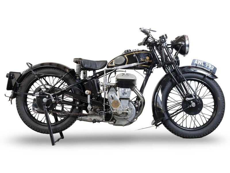 The first Sunbeam motorcycle - a 350cc (2¾hp) sidevalve single - left the Wolverhampton premises of John Marston Ltd, hitherto a manufacturer of finest quality enamelled goods, bicycles and - latterly - cars, in 1912. Like Marston's other products, his motorcycles soon established a reputation for sound construction and exemplary finish. Sunbeam quickly established a reputation for sporting prowess, achieving 2nd place in the 1914 Isle of Man Senior TT and winning the 1920 race. Overhead-valve engines were introduced in the mid-1920s but early successes were achieved with sidevalve-engined machines, most notably the 492cc (3½hp) 'Longstroke', which secured a debut win at the 1921 French Grand Prix ridden by Alec Bennett. In road-going form this remarkable engine remained in production right up until WW2. The Model 6 'Longstroke' had gained drum brakes by the mid-1920s, and in lightweight guise with low handlebars and minimal equipment was known as the 'Speedman's Machine'.