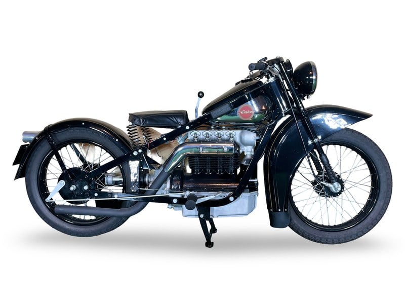 The result of diversification by the Danish vacuum cleaner manufacturer, Fisker & Nielsen, the Nimbus motorcycle first appeared in 1919. Unusually, only inline four-cylinder models were built. These were of advanced design, using shaft final drive and pressed steel frames right from the start of production, and pioneered the use of the telescopic front fork in the mid-1930s. The early models featured a distinctive tubular spine frame that doubled as the fuel tank, soon gaining the nickname 'stovepipe'. The low-compression Nimbus engine was noted for its smoothness and flexibility.