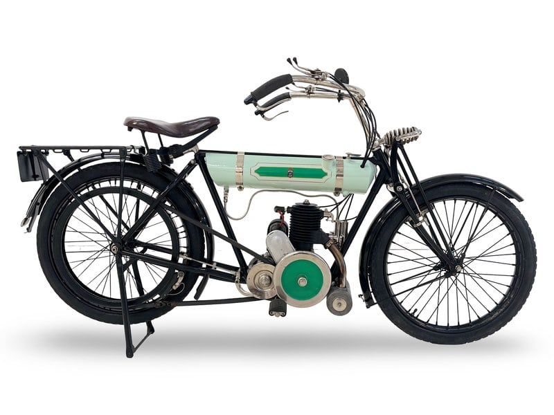 The renowned 3½hp model debuted in 1907 with a 453cc engine, later enlarged to 476cc in 1908 and 499cc in 1910, before being replaced by the 550cc (4hp) model in 1914. Initially offered with a single gear, the 4hp gained a three-speed Sturmey-Archer gearbox later that year, becoming the Model H. Also launched in 1914 was the Junior, a lightweight 225cc two-stroke. Weighing just 129lb, it featured chain-and-belt drive and a two-speed gearbox—unusual for the class—though it lacked a clutch and was push-started. Nicknamed the "Baby" Triumph, the Junior returned after the Great War and remained in the catalogue until 1922.