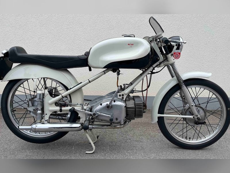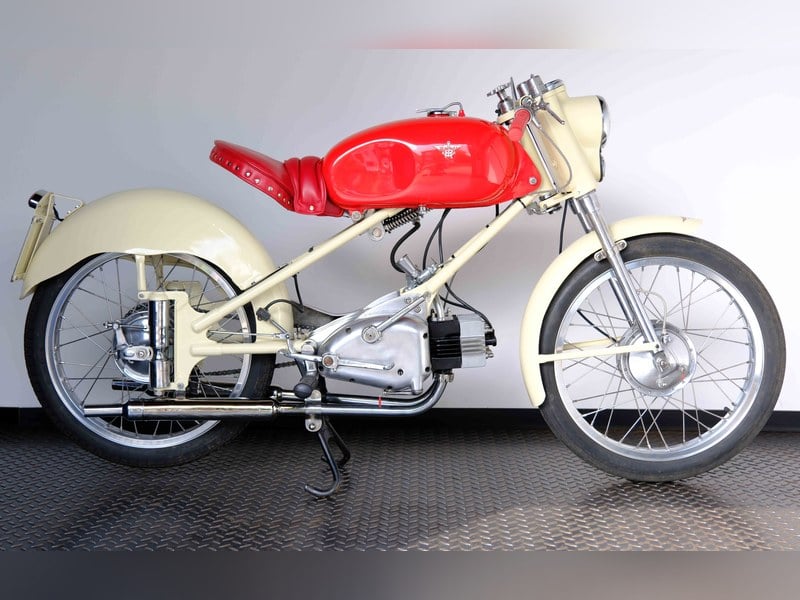 It is for its motor scooters that Rumi is best remembered today, particularly the Formichino (Little Ant) and its derivatives, which were among the fastest scooters of their day. Rumi was founded in Bergamo, Italy at the beginning of the 20th Century. The company originally supplied components to the textile industry and during World War 2 produced miniature submarines and torpedoes. Headed by Donnino Rumi, it switched to motorcycle manufacture at the war's end, introducing its first Turismo model in 1950. This little gem was powered by what would become Rumi's trademark engine: a 125cc parallel-twin two-stroke, the cylinders of which were inclined horizontally.