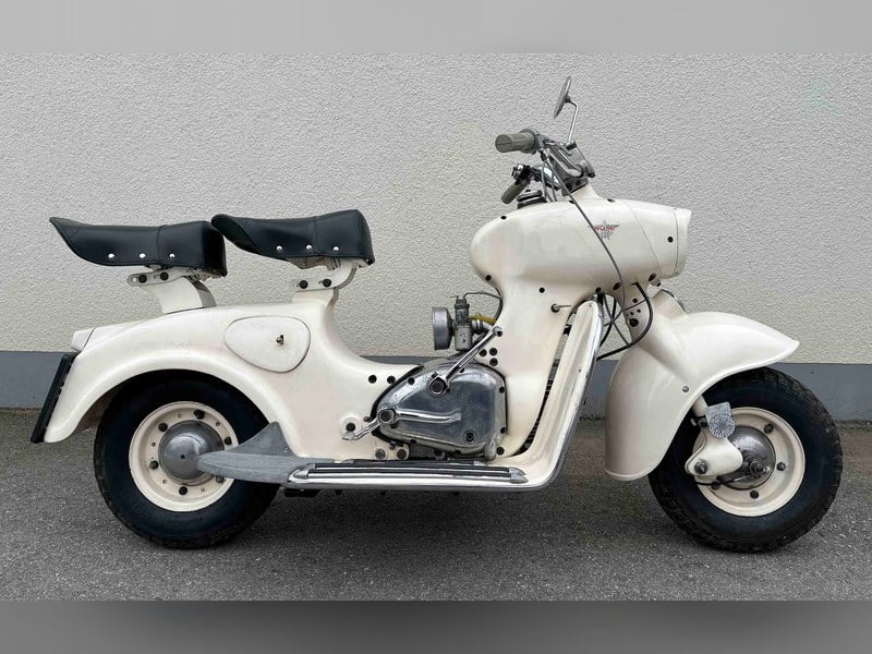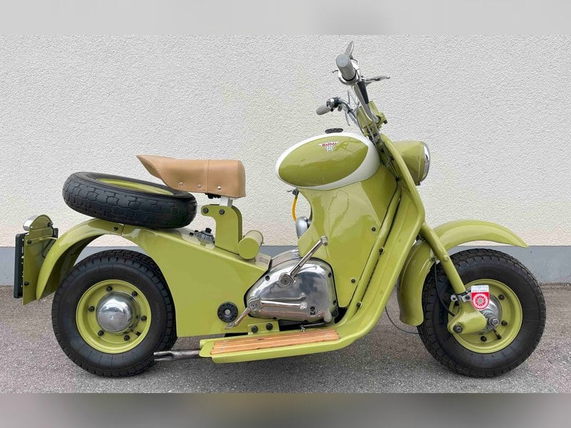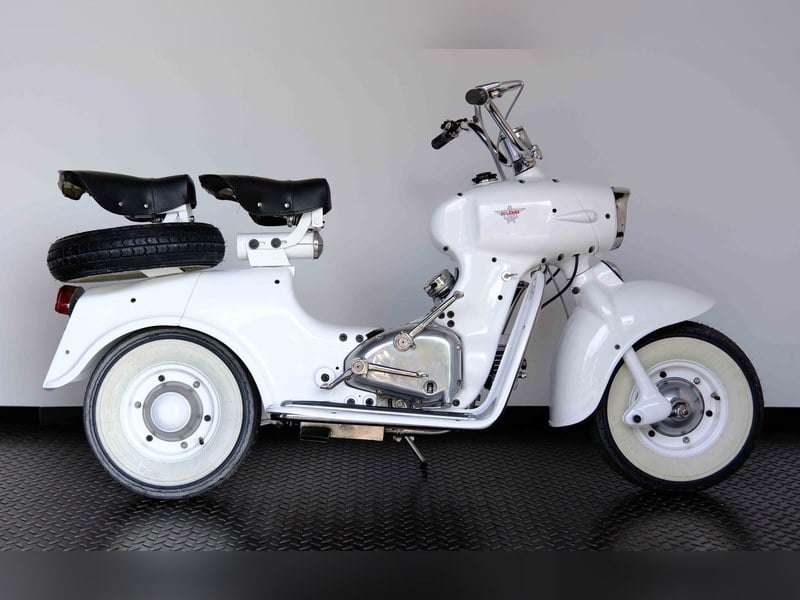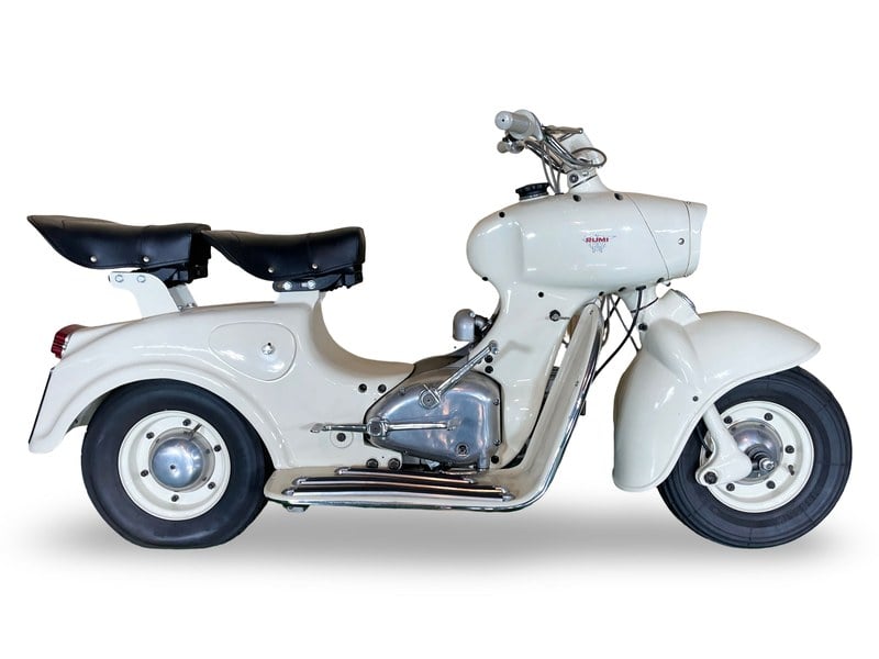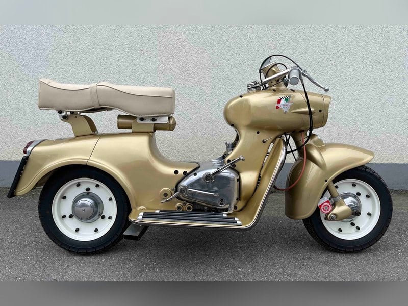 Built in numerous different stages of tune, this wonderfully versatile motor was used to power standard, Sport and Competizione models, as well as a range of highly advanced scooters. A masterpiece of scooter design, Rumi's Formichino (Little Ant) arrived in 1954 and progressed via Normale and Lusso versions to the Sport and Bol d'Or racer. Its rivals might have been designed with cheapness and simplicity in mind but Donnino Rumi started from engineering first principles with the Formichino, using the engine as a stressed member of the chassis, which was made up from aluminium castings bolted together. Sadly, despite its technical innovation and engineering prowess, Rumi had gone by 1962. Today the Formichino is today one of the most highly sought-after of all scooters.
