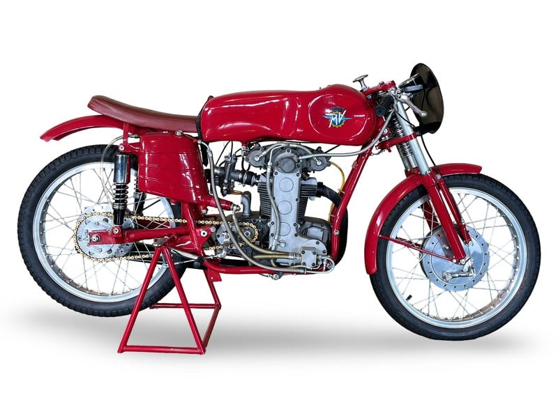 Our private vendor purchased this overhead camshaft model in 2015. It had been sold new and registered in Glasgow in 1957 with the index number KSD 310. Purchased by his father, it was intended for the son, Felix Darroch, to use the machine in 200cc class racing, and to this end he purchased a 194cc cylinder barrel and piston. The engine was dismantled to carry out the work, but never completed by the first owner. Felix subsequently emigrated to Canada and the bike languished unused in his father's garage until it was necessary to clear it. The CS was sold to the present owner by the family, and he set about to complete the work started decades before. It was decided to strip and rebuild the engine, and it was found to be in very good condition throughout, and a reflection of the machine believed to have done no more than the mileage recorded on the odometer. However, although not needed, the vendor advises that he replaced the bearings and cam chain as a matter of course. The flywheel assembly had been polished and balanced. He also renewed the wiring and replaced the ignition coil and points with a German electronic ignition system by Power Dynamo at a cost of £412 (invoice on file). The original registration KSD 310 had unfortunately lapsed, and DVLA would not re-allocate it without documentary evidence, so it was given the present age-related number. Following completion of the work in 2016, the MV has been used only for local VMCC club nights and events. Last run in November 2025 the owner's advancing years and domestic commitments have prompted its present sale. Accordingly, the machine should require only light re-commissioning and basic safety checks before taking to the road with a new owner. Various spare parts accompany the machine, including a camshaft assembly. Documentation comprises a current V5C, a quantity of invoices/ receipts, dating certificates from the VMCC and MV Owners Club, DVLA correspondence, and sundry papers.