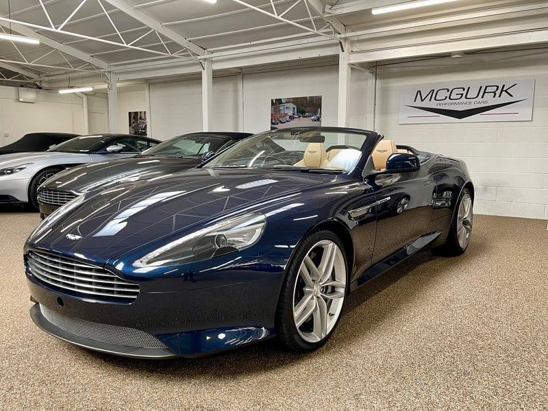 McGurk Performance Cars se complace en ofrecer este impresionante DB9 Volante, acabado en Midnight Blue sobre cuero Winter Wheat. El coche fue registrado por primera vez en septiembre de 2014 y tiene las siguientes especificaciones:-