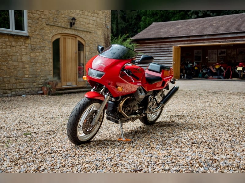 This 1993 example showcases the distinctive longitudinal V-twin engine configuration that Moto Guzzi is renowned for, wrapped in sporting bodywork that defined the era.