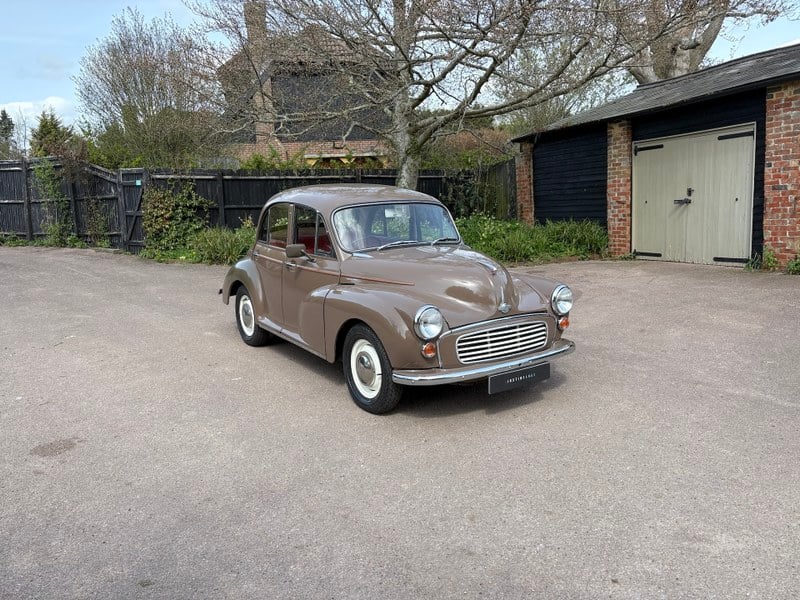 How cute is this? This is a lovely litle 1969 Morris Minor 1000 Deluxe 4-Door Saloon, a very late car, finished in Peat Brown with Chariot Red Interior! Perfect sixties colours! She is an older restoration that still presents well with a huge service history! Showing 90k Miles on the clock, this is a lovely solid, well sorted Moggie, ready for the summer!