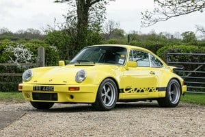 This lot will be auctioned via Iconic Auctioneers, The Iconic Sale at Supercar Fest 2026 on Saturday the 16th of May, Sywell Aerodrome, Sywell, Northampton, NN6 0BN. Porsche revived the Carrera name for its luxuriously equipped, top of the range 911 in 1973. Designated Carrera RS (RennSport), the newcomer was intended as a limited-edition product for 'Group 4' GT racing, a class that required a minimum of 500 built. However, the resulting demand for this fabulous car proved so great that the production run was later extended by 1, 300 or so units. Based on a lightened 911 S platform, the Carrera RS featured revised suspension and wider rear wheels (beneath flared arches) for improved handling, while the 2. 7-litre, fuel-injected, air-cooled six-cylinder engine’s 210bhp boosted top speed to around 150mph. Not merely a styling gimmick, the Carrera’s trademark 'duck’s tail' spoiler made a vital contribution to high speed stability, a virtue of increasing importance as power outputs continued to rise. Rare and highly sought after, original examples of the 1973 RS are now very expensive, a state of affairs that has inspired many a Porsche enthusiast to create replicas of what was one of the defining sports cars of its era.