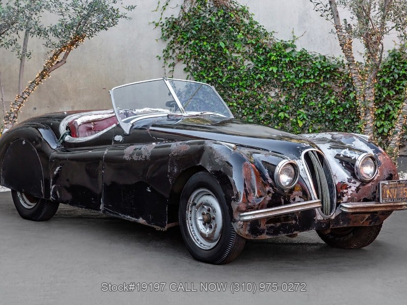 1950 Jaguar XK120 Roadster Introducing this recently discovered 1951 Jaguar XK120 Roadster project car, highlighted by its matching numbers engine block. This particular XK120 carries a unique piece of Californian history: a California black license plate, which includes a sticker from 1966, hinting at the car's extensive journey and its compelling potential to be fully restored and brought back to life on the open road. Highlights:- California Car (Black-Plate)- Black Exterior Color- Inline-Six Engine- SU Dual Carburetors- Rear Fender Skirts- Smiths Instrumentation- Convertible Soft top- 16-Inch Steel WheelsThis classic sports car is equipped with a manual transmission, an inline-six engine, SU dual carburetors, and drum brakes. Exterior features include chrome bumpers, a split windshield, rear fender skirts, and 16-inch steel wheels. The interior features Smiths instrumentation, bucket seating, a 4-spoke steering wheel, and convenience items like fender-mounted rearview mirrors, a passenger dash grab handle, and a push-button radio, all presented alongside the distinct, period-modified zebra-print interior trim. While this Jaguar project car is currently not running, its potential as a valuable investment opportunity is undeniable. Do not miss your chance to own a piece of automotive history with this XK120 Roadster. For $26, 500Introducing this recently discovered 1951 Jaguar XK120 Roadster project car, highlighted by its matching numbers engine block. This particular XK120 carries a unique piece of Californian history: a California black license plate, which includes a sticker from 1966, hinting at the car's extensive journey and its compelling potential to be fully restored and brought back to life on the open road. Highlights:- California Car (Black-Plate)- Black Exterior Color- Inline-Six Engine- SU Dual Carburetors- Rear Fender Skirts- Smiths Instrumentation- Convertible Soft top- 16-Inch Steel WheelsThis classic sports car is equipped with a manual transmission, an inline-six engine, SU dual carburetors, and drum brakes. Exterior features include chrome bumpers, a split windshield, rear fender skirts, and 16-inch steel wheels. The interior features Smiths instrumentation, bucket seating, a 4-spoke steering wheel, and convenience items like fender-mounted rearview mirrors, a passenger dash grab handle, and a push-button radio, all presented alongside the distinct, period-modified zebra-print interior trim. While this Jaguar project car is currently not running, its potential as a valuable investment opportunity is undeniable. Do not miss your chance to own a piece of automotive history with this XK120 Roadster.