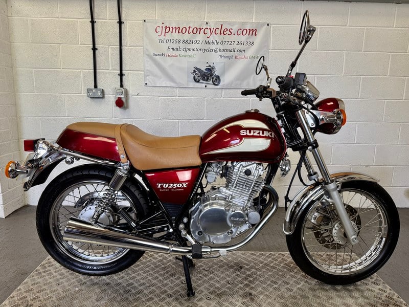 AMAZING 2000/ W SUZUKI TU250XW SUPER CLASSIC, FABULOUS EXAMPLE IN MARRON AND WHITE OF SUZUKI’S RETRO QUARTER LITRE THUMPER SINGLE, THIS STRIKING MOTORCYCLE IS AS GOOD IF NOT BETTER THAN ANY OTHER EXAMPLE YOU WILL FIND FOR SALE THAT’S IF YOU CAN FIND ONE, NEW OIL AND FILTER, THE CHROME WHEEL RIMS ARE SUPERB AS ARE THE REAR SHOCKS AND CHAIN GUARD, IT’S NOW AVAILABLE FOR A LUCKY NEW CUSTODIAN, NEW MOT ON SALE, THESE BIKES ARE GREAT FUN TO RIDE VERY ECONOMIC TO RUN AND HAS THE BENEFIT OF AN ELECTRIC START PLUS A NICE LOW SEAT HEIGHT IDEAL TO BUILD CONFIDENCE OR RIDE AROUND THE COUNTRY ROADS, SUPPLIED WITH MOT HISTORY TO HELP PROVE MILEAGE, VIEWING AVAILABLE IN MILTON ABBAS BLANDFORD DORSET P/ EX WELCOME SIMILAR BIKES WANTED FREE LOCAL DELIVERY NATIONWIDE AT COST GARAGE CLEARANCE AVAILABLE ANYTHING INTERESTING CONSIDERED WHY