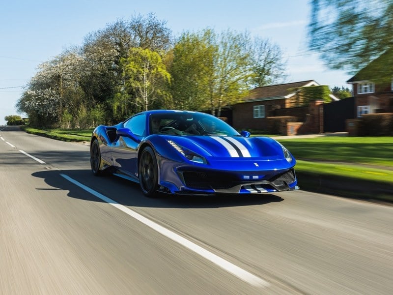Cet exemple fourni au Royaume-Uni a été livré à son premier propriétaire, superbement équipé en Blu Elettrico avec la rayure parallèle de la Pista en Argento Nurburgring. Bénéficiant de l’option de jantes en fibre de carbone de 20” dès le départ, celles-ci abritent des étriers de frein Giallo. À l’intérieur, Nero Alcantara avec Cavallinos et toutes les surpiqûres en Giallo 0113, option spéciale.