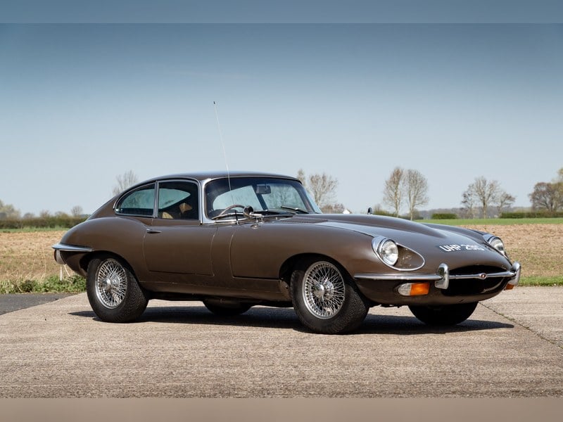 Un superbe survivant non restauré à numéros correspondants, cet E-Type représente une association très rare du corps de coupé à capot fixe dans une spécification RHD de marché intérieur avec boîte manuelle, peinture Sable et sellerie en cuir Cinnamon. Fabriqué le 5 mars 1969, il a été expédié au distributeur Mann Egerton de Derby puis marqué « Personal Export Delivery », bien qu’il semble être resté en Grande-Bretagne, portant l’immatriculation Coventry ‘UHP 291G’.