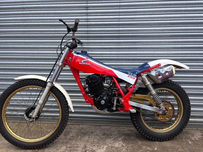 HONDA TLR 250 mit dem ruhigeren RTL 250 Motor, Aluminium-Schwinge, alle Rahmenschmiede-Modifikationen vorgenommen, die es zu einem äußerst wettbewerbsfähigen Top-Klasse-Allround-Mint-Trials-Bike machen.
