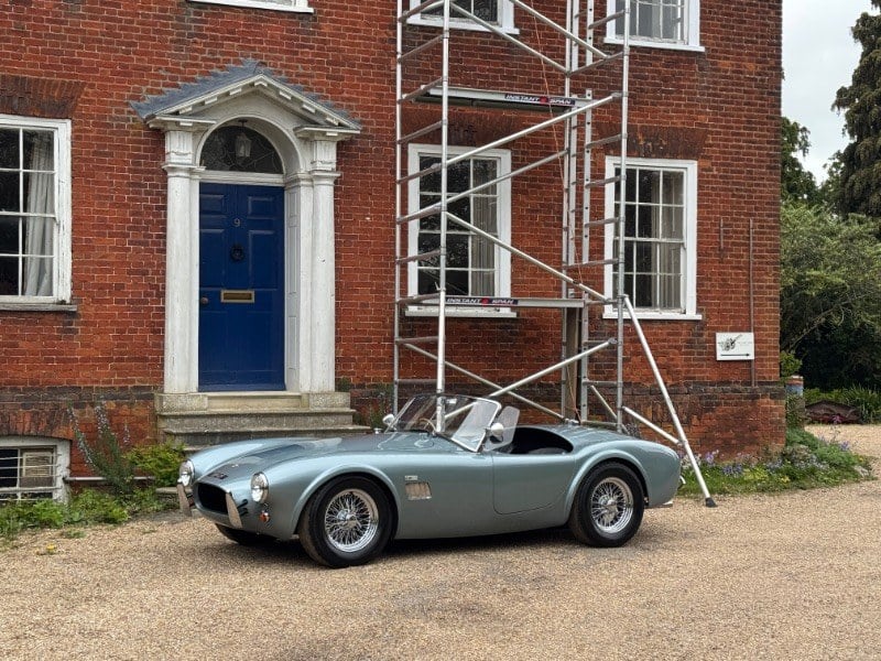 Powered by an aluminium rover V8 3500cc V8 engine , Chrome air filter, Edelbrock 4 barrel carburettor , Edelbrock Performance inlet manifold, , Dressed with “FORD Motorsports Cobra” rocker covers, Aluminium header tank ,