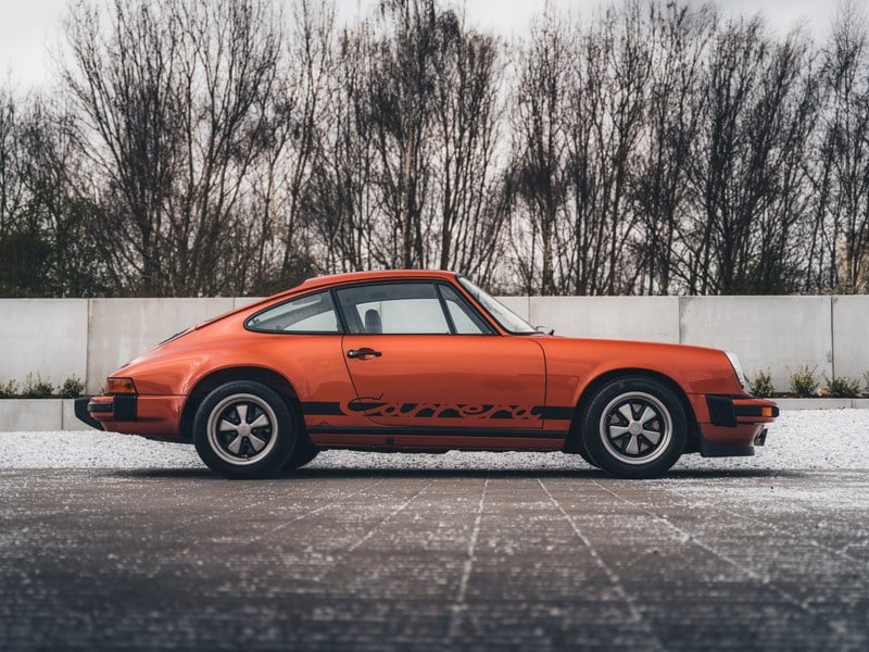 Cette voiture est peinte en 341 Royal Purple, qui est la couleur d'origine, avec les jantes Forged 15" Fuchs d'origine, l'intérieur tan et à motif pied-de-poule et avec l'instrumentation Porsche classic à 5 cadrans. Elle présente beaucoup d’originalité, y compris le carnet d'entretien original tamponné par le concessionnaire Porsche agréé "Motortune Ltd" à Brompton, Londres, en 1975.