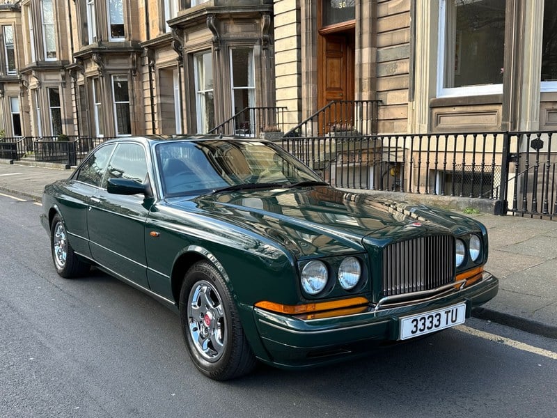 Un ejemplar puro y valioso, entregado al último propietario hace 28 años a apenas 2800 millas con la factura en archivo. Muy especial siendo un coche tan temprano, parece ser el 4º coche de volante a la derecha construido, VIN H42013. Acabado en la combinación de colores súper tradicional Bentley Racing Green con cuero Spruce. Originalmente entregado al Sultán de Brunei, con especificaciones adicionales que incluyen llantas cromadas, mejora de frenos, volante y mejora del sistema de sonido descritas en la carta de Bentley de agosto de 1998. Una historia increíble acompaña, que comprende 26 sellos de servicio, pasando a un 2º libro de servicio de continuación. Sorprendentemente, todos los servicios realizados por concesionarios principales, con la excepción del más reciente en Mulsanne Motors, especialistas en Bentley, donde se llevó a cabo un servicio de reacondicionamiento en marzo de 2026, que consistió en cambiar los aceites del motor, de la caja de cambios y del eje trasero, actualizar el aire acondicionado a gas R134 y colocar nuevas correas de transmisión del motor. Al ser este un coche de motor temprano evita problemas de la culata y viene con la electrónica de asientos más suave de la época. Con tan solo 33. 850 millas desde nuevo, conduciendo tan ajustado y suave como si tuviera 2 años. Completo con el pack completo de manuales, todos los folletos, el equipo de herramientas, guantes blancos de fábrica aún en su embalaje y 4 llaves Bentley. Presencia impresionante. ¿Qué podría ser más tradicional y británico que un Bentley coupé de 2 puertas acabado en Racing Green? May P/ X. (Matriculación excluida), £44, 950