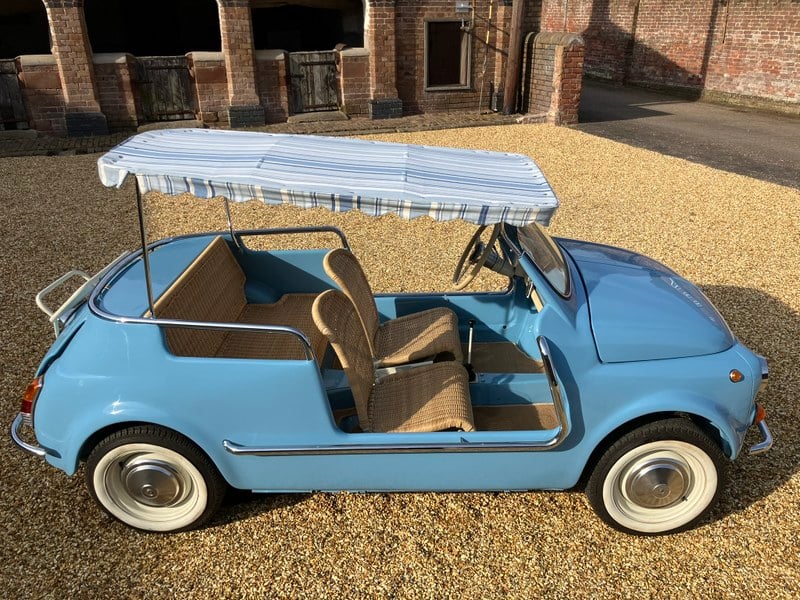 The ‘Jolly’ was borne from the desire of style icon and boss of Fiat, Gianni Agnelli, to have a lightweight beach car that would accompany his 82ft yacht ‘Agneta’. Upon completion by Fiat, the original cars were dispatched to nearby coachbuilders Carrrozeria Ghia to be converted by having the roof removed, sills strengthened, doors removed, windscreen cut-down and interior transformed to sand and sea friendly natural wicker.