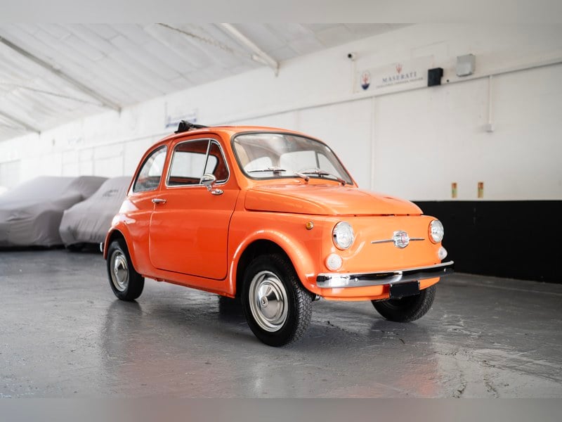 This stunning 1971, Lamborghini Orange Fiat 500 F was the 3rd generation of Dante Giacosa’s famous design. Sitting between the Lusso (’L’) and earlier D variants, the F is praised for its purity, keeping in tune with the original design but mechanically more similar to the L. The Fiat 500 is still one of Italy’s most famous and iconic cars. Nothing quite emulates the dolce vita and Italian driving temperament like the Fiat 500. Its intuitive driving experience is nothing short of engaging, and the car has great character.