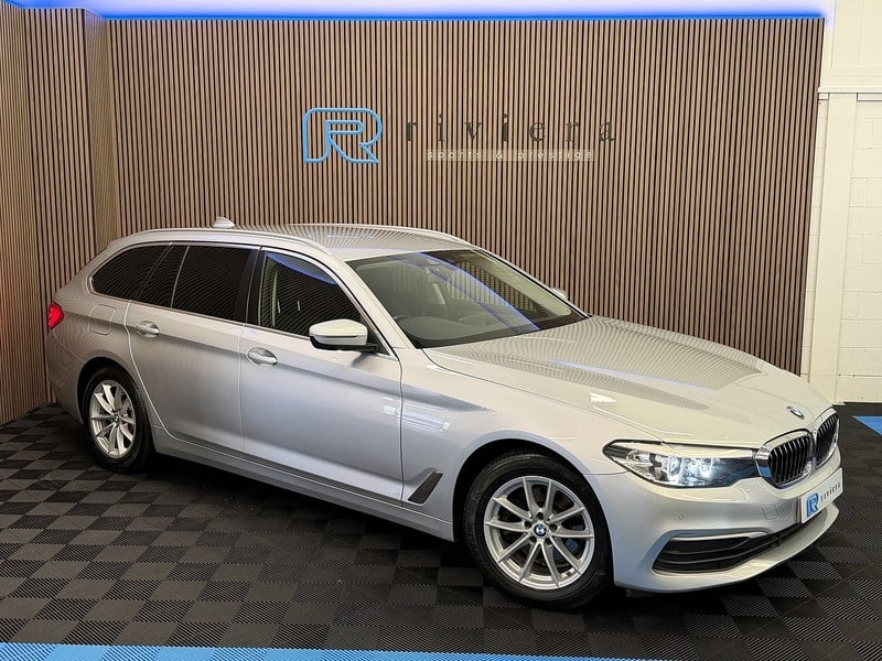 Riviera Sports & Prestige are pleased to present this well-maintained 2019 ‘19’ BMW 520d xDrive SE Touring, finished in the ever-popular Glacier Silver Metallic with Black Dakota Leather interior. Having covered 89, 000 miles and supported by a Full Service History, this example represents an excellent opportunity to acquire a highly practical and well-specified premium estate.