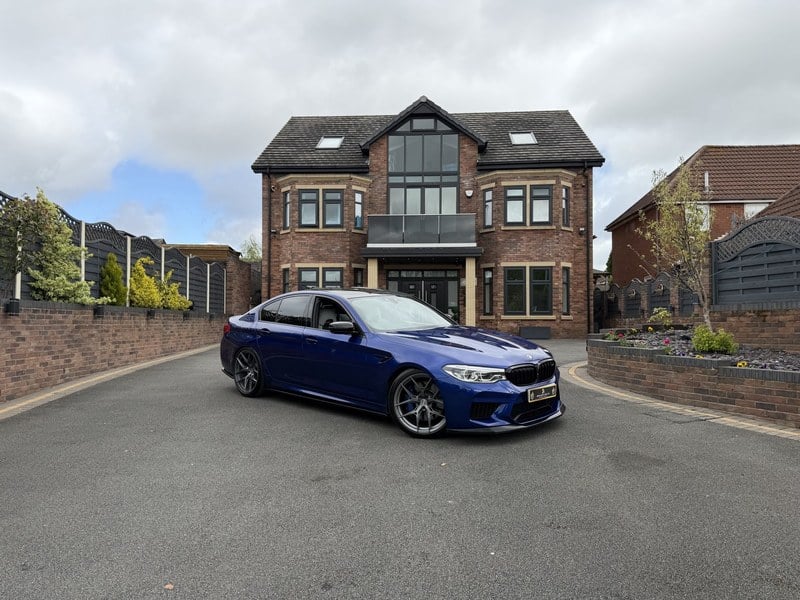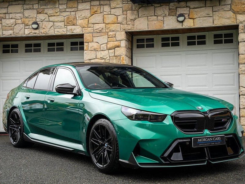 Morgan Cars freut sich, Ihnen unseren BMW M5 vorstellen zu dürfen, präsentiert in wunderschönem Isle of Man Grün Metallic-Lack, mit kontrastierendem Premium Silverstone Zwei-Ton belüftetem Leder-Innenraum und Carbonfaser silbernen Fäden, hochglänzender Innenraumverkleidung.