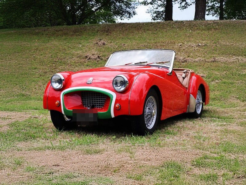 Après la Seconde Guerre mondiale, la popularité des petits roadsters a explosé chez les soldats américains stationnés en Europe. Pour répondre à cette demande, divers constructeurs européens se sont lancé dans le développement de voitures de sport à petit displacement. Triumph, en Grande-Bretagne, a joué un rôle, en développant d’abord un prototype nommé TR1. Celui-ci a ensuite été rendu plus civilisé pour un usage civil et a été lancé sous le nom de TR2. Cependant, le TR2 a été confronté à des problèmes de surchauffe et à la nécessité de développer un modèle avec des freins et une suspension encore plus performants pour résister à une utilisation aux États‑Unis. Cela a conduit à l’introduction du modèle que nous présentons aujourd’hui : le TR3. Le moteur est un quatre cylindres en ligne refroidi par eau fabriqué par Standard Motor Company, OHV, 1991 cm3, développant 95 chevaux. Il atteint une vitesse de pointe respectable de 175 km/ h. La suspension a été révisée avec une configuration indépendante à double triangulation à l’avant et un essieu arrière rigidifié, évoluant vers un modèle offrant une tenue de route encore meilleure que celle du TR2. De plus, dès ce modèle, les freins avant sont équipés de freins à disque hydrauliques Girling, lui conférant une performance de premier ordre parmi les petites sportives britanniques de l’époque. Son design distinctif, avec des portes profondément taillées, des ailes avant et arrière qui se lèvent indépendamment et des optiques saillantes, a gagné une popularité immense pour son style très personnel, recueillant le soutien des passionnés de voitures de sport dans le monde entier, y compris en Amérique. Grâce à sa structure simple, sa facilité d’entretien, son moteur robuste et son châssis robuste, c’était une voiture que même des passionnés amateurs pouvaient entretenir facilement et elle a été largement utilisée dans les sports mécaniques. Ce véhicule a été immatriculé pour la première fois au Japon en 2022. Comme vous pouvez le voir, la carrosserie, le moteur et la suspension ont tous subi une restauration complète du cadre. L’intérieur et les autres éléments ont également été entièrement révisés, aboutissant à un état qui ne peut être meilleur. Il est dans un état où il peut être conduit immédiatement ou utilisé pour des événements. Il est rare de trouver un TR3 aussi consciencieusement restauré.