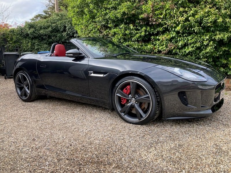 2013(13) Jaguar F-Type Supercharged 3. 0 V6 S (380 BHP) Conversível. Cinzento Metálico Stratus com pele vermelha deslumbrante e teto elétrico preto. Caixa automática de oito velocidades com palhetas de bronze, direção assistida, travões ABS, arranque/ paragem sem chave bronze, rodas de liga leve de 20” com acabamento carbono, ajuste elétrico do assento mais assentos aquecidos, climatização automática de duas zonas, cruise control, navegação por satélite, sistema estéreo Bluetooth com ligação Bluetooth ao telemóvel, rádio DAB, sensores de estacionamento traseiros além de câmara de marcha-atrás, limpeza dos faróis, vidros elétricos, espelhos elétricos ajustáveis e plegáveis, spoiler traseiro elétrico, ajuste elétrico do volante, sistema de escape ativo comutável, volante multifunções, suspensão desportiva, controlo de tracção ajustável, fecho central remoto e alarme com 2 chaves, etc. Localizámos este carro cuidadosamente cuidado em Jersey, onde estava guardado. Um carro fabuloso de conduzir com 380 BHP do motor V6 supercharged. EURO 5, compatível com ULEZ. Apenas 19. 500 milhas desde novo com histórico de serviço completo, incluindo um serviço completo e pneus novos nos últimos cerca de 6 meses / 1. 500 milhas. A condição é bonita em todos os aspectos.