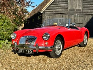 1958 MG MGA, orientrot lackiert, steht auf lackierten Drahtspeichenrädern. Ein wunderschönes Exemplar mit einer hervorragenden Lackierung, die unmarkiert ist, keinerlei Makel oder Blasen. Alle Chromteile sind erstklassig und das Interieur ist erstklassig! Die Spaltmaße der Türen sind ausgezeichnet, und das Auto wirkt bei jedem Licht schön. Ein schönes Auto zum Fahren mit exzellentem Öldruck. Dieses Auto wurde 2014 vollständig restauriert und verfügt über ein umfassendes und dokumentiertes Fotodossier, das die Restaurierung im Detail beschreibt. Bundesweite Lieferung gegen Aufpreis mit einem Woodford Galaxy-Anhänger.