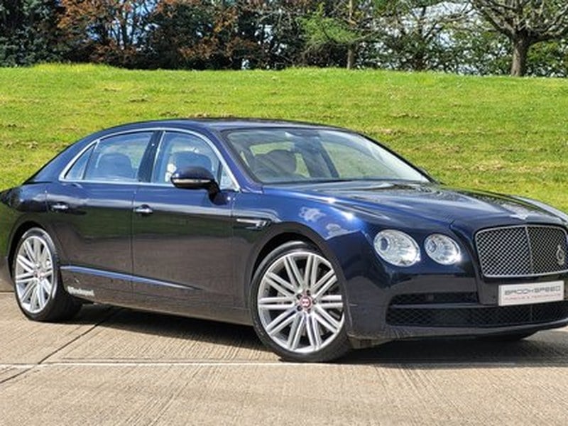 Brookspeed are please to offer this Bentley Flying Spur High Spec Mulliner, Presented in the stunning Dark Sapphire metallic with a beautifully appointed Linen & Imperial Blue Mulliner interior, this is a very well-specified example of the prestigious Bentley Flying Spur.