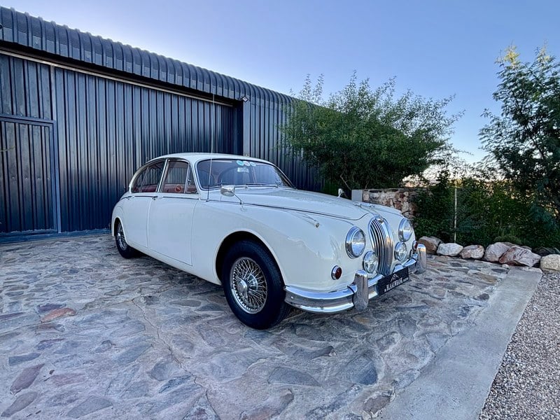 More recently, in 2021, the MKII was brought to our classic car workshop Malton Coachworks for a refresh. The front suspension has been comprehensively overhauled with new bushes on all multi-link arms, new anti-roll bar, new brake discs and pads for the front and rear, and the car was fitted with a full new set of Avon tyres and tubes to the tune of £4, 200. Whilst with is, our trim department fitted a brand-new wool headlining. The result is a superbly presented MKII that combines striking good looks with enhanced performance and impressive usability. Powered by the upgraded 3. 8-litre straight-six engine mated to a four-speed manual Moss gearbox with overdrive, it delivers the classic Jaguar blend of effortless cruising ability and genuine sporting character.