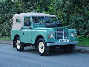 Dieser beeindruckende Land Rover S3 88” wurde am 23. März 1984 erstmals zugelassen – das allerletzte Produktionsjahr. Er präsentiert sich hervorragend in seiner hellen Pastellgrün-Lackierung, Limestone-Felgen und dem makellosen Stoffverdeck. Visuell ist diese Farbkombination sehr auffällig und kommt mit einem guten Maß an Originalität, gepaart mit Komfort- und Bequemlichkeits-Upgrades wie Deluxe-Vordersitze und die größeren Defender-ähnlichen Außenspiegel für verbesserte Sicht.