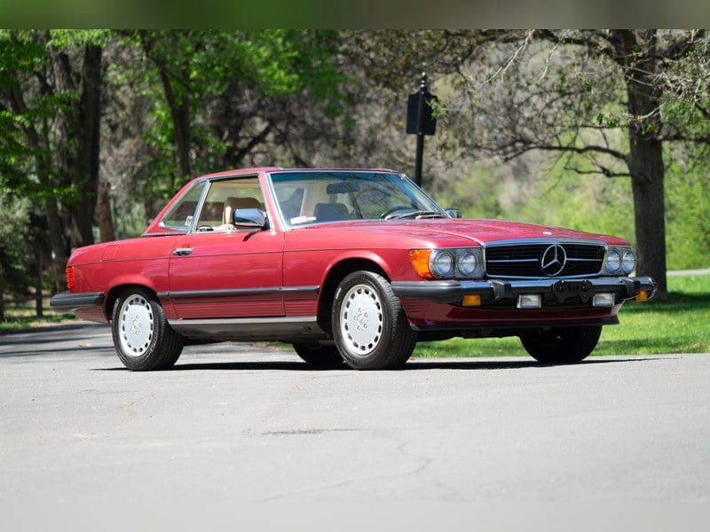 The most desirable of the classic Mercedes-Benz 560SLs are the last-year ’89 models, with all the improvements that were added since the car’s introduction four years earlier. And the most desirable 1989 is one with ultra low mileage…and even better is if it’s in one of the special-order, more uncommon colors. Garnet Red Poly was a one-year-only shade and looks spectacular with this car’s Mushroom interior. It's an interesting color - check the photos for interior as well as exterior 'in the sun' shots. This example is our favorite kind of consignment cars - a Boomerang. We sold this car for a customer in 2021. Now, it's back and we're offering it again.