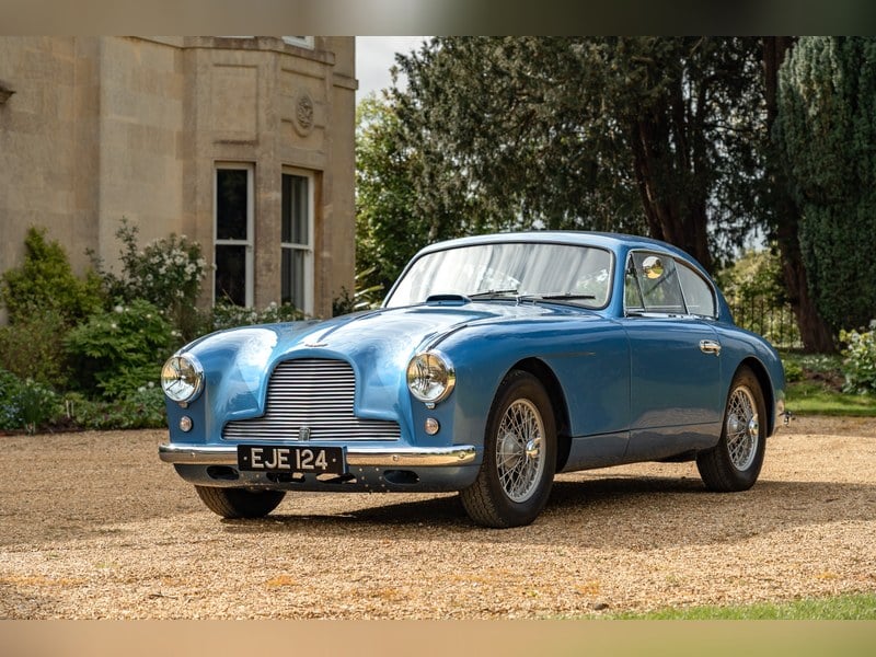 According to its accompanying Aston Martin Ltd build sheet, this desirable MKI 3. 0-litre example, chassis LML/ 881, was originally specified with Alfin brake drums and side jacks, both highly sought-after period features. Delivered new on 30th April 1955 to E. H. Organ & Sons Ltd, it was finished in the sophisticated colour scheme of Blue Haze over grey leather upholstery with blue piping. Notably, the car retains its original UK registration ‘EJE 124’, together with its matching-numbers 3. 0-litre engine, numbered VB6J 353.