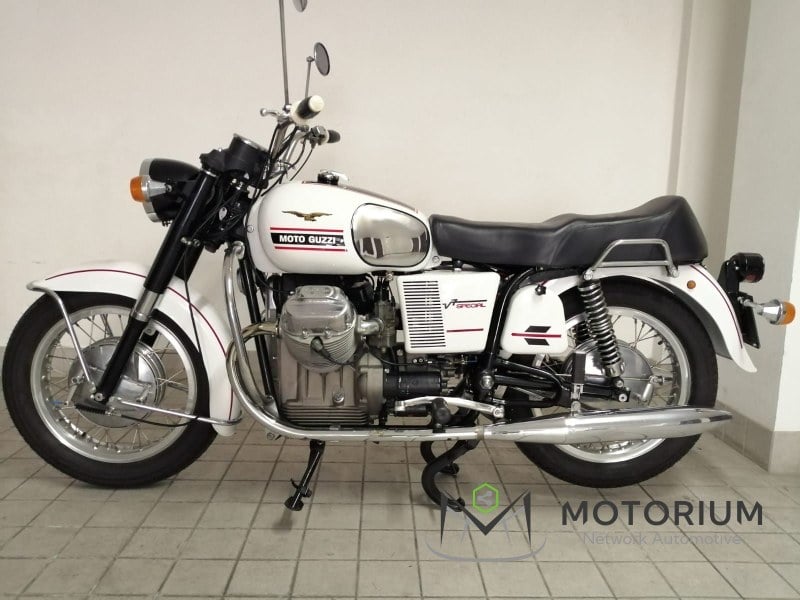 Motorium – Cesena Agency offers for sale a Moto Guzzi V7 Special ex-police motorcycle. Vehicle historical and of collector's interest , reserved for enthusiasts and connoisseurs. Ex-police motorcycle registered for private use in 1983. COMPLETELY RESTORED BOTH MECHANICALLY AND BODYWORK IN 2024 Viewable On appointment at our headquarters in Via Emilia Ponente 1720, 47522 CESENA (FC) Tel the details below cell. the details below MOTO GUZZI CERTIFICATE OF ORIGIN available. Technical inspection possible upon agreement with the Motorium consultant. VEHICLE DATA SHEET Brand: MOTO GUZZI Model: V7 SPECIAL EX POLICE Year: 1972 Mileage: 1500 KM CURRENTLY FROM NEW ENGINE Fuel: PETROL Manual transmission White color MOTORIUM SERVICES – CLASSIC Complete assistance with buying and selling Management of procedures and transfer of ownership Historical documentary support Dedicated and covered transport Motorium operates as specialized intermediary , ensuring security and transparency in classic vehicle sales. We decline any responsibility for any discrepancies on sales portals beyond our control.