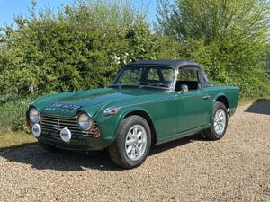 Este TR4a de exportación original en Triumph Racing Green se asienta muy bien sobre un nuevo juego de llantas Minator con neumáticos Yokohama. El coche se beneficia de carburadores Stromberg recientemente reacondicionados, conversión de amortiguadores traseros (utilizando Gaz Shocks) y un ventilador eléctrico de refrigeración. Aún en su formato original de conducción a la izquierda (LHD), el coche va de maravilla por la carretera y se ha utilizado para viajes por carretera por el sur de Francia durante los últimos años. Se han gastado varios miles de libras en el vehículo en los últimos años, con numerosos recibos. Los parachoques originales están incluidos si el precio de venta es razonable o cercano a la oferta. ¡Los parachoques están en muy buen estado! Incluye certificado de historial, se admiten inspecciones en rampa, vendrá con 12 meses de MOT, una membresía gratuita de 1 año en TR Register y descuento permanente para el comercio en piezas (8-10% donde sea aplicable). Reserva tu cita para ver el coche hoy. Venta en comisión £20, 995