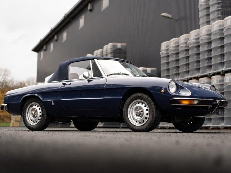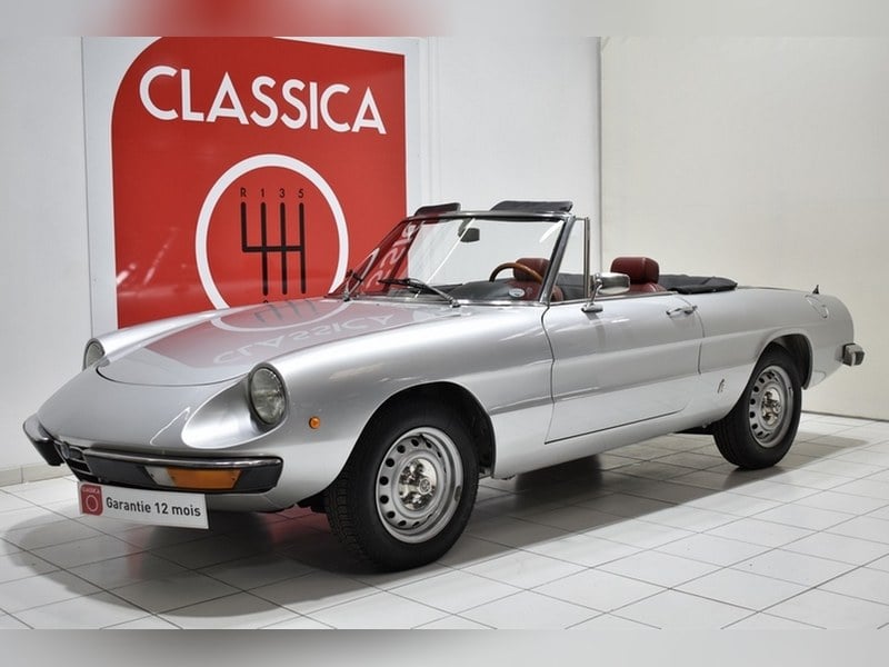 The car presented here is an ALFA ROMEO Spider 1300 Junior from January 1973 in its original colour “Argento metallisé 767” (matching colour).