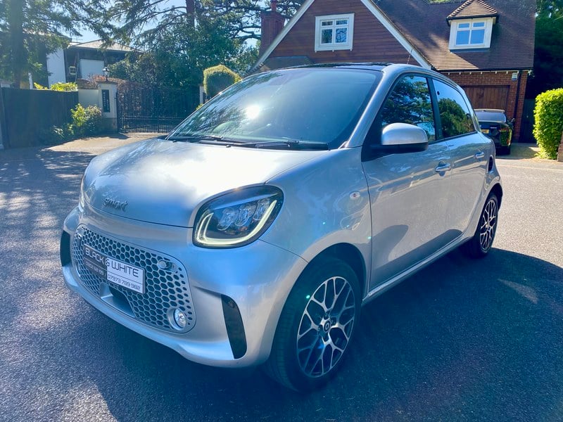 Cette Smart EQ Exclusive (tout électrique, se recharge à domicile sur une prise normale ou sur une station de charge) est le haut de gamme; le modèle est fini en Cool Silver Metallic avec un intérieur tout noir en cuir et seulement 1 propriétaire depuis l’origine. L’équipement comprend mais sans s’y limiter : jantes diamant 16" en alliage, vitrage teinté, toit panoramique en verre à double pans avec stores, antibrouillards, feux de circulation de jour (DRL), Apple CarPlay, GPS, caméra arrière, capteurs de recul, capteur de pluie, climatisation, vitres et rétroviseurs électriques, accoudoir central, ordinateur de bord (OBC), régulateur de vitesse, sièges avant et arrière chauffants ainsi que des tapis de sol logo Smart. Historique d’entretien complet Smart MB avec les entretiens effectués respectivement à 5 117, 10 386 et 14 555. Livré avec 2 clés et le carnet complet... OFFRES - ÉCHANGE - ÉCHANGES ACCEPTÉS - LIVRAISON Porte-à-Porte disponible, gratuite dans un rayon de 100 miles (~160 km).