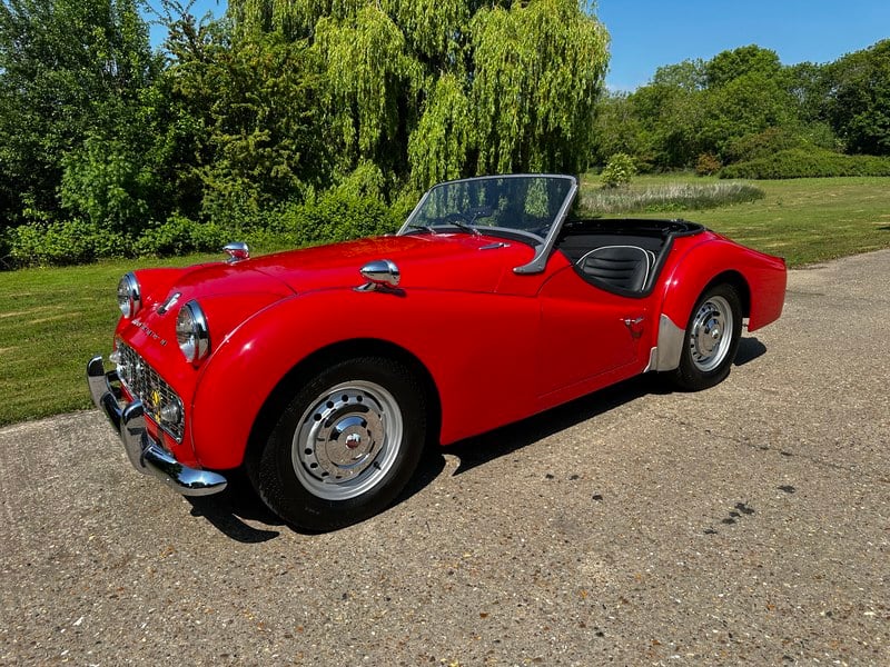 With us once again at RFH Classics we are delighted to offer this wonderfully characterful 1960 Triumph TR3 Roadster, finished in a vibrant Bright Red with a contrasting Black interior piped in White, a colour combination that suits the car perfectly and really highlights its classic 1950s lines. The Triumph TR3 is one of those cars that truly defined British open-top motoring. Introduced in 1955 as an evolution of the TR2, it quickly built a reputation for being tough, simple and surprisingly capable, both on the road and in competition. With its cutaway doors, wide grille and purposeful stance, the TR3 has a presence that feels every bit as special today as it did over 60 years ago.